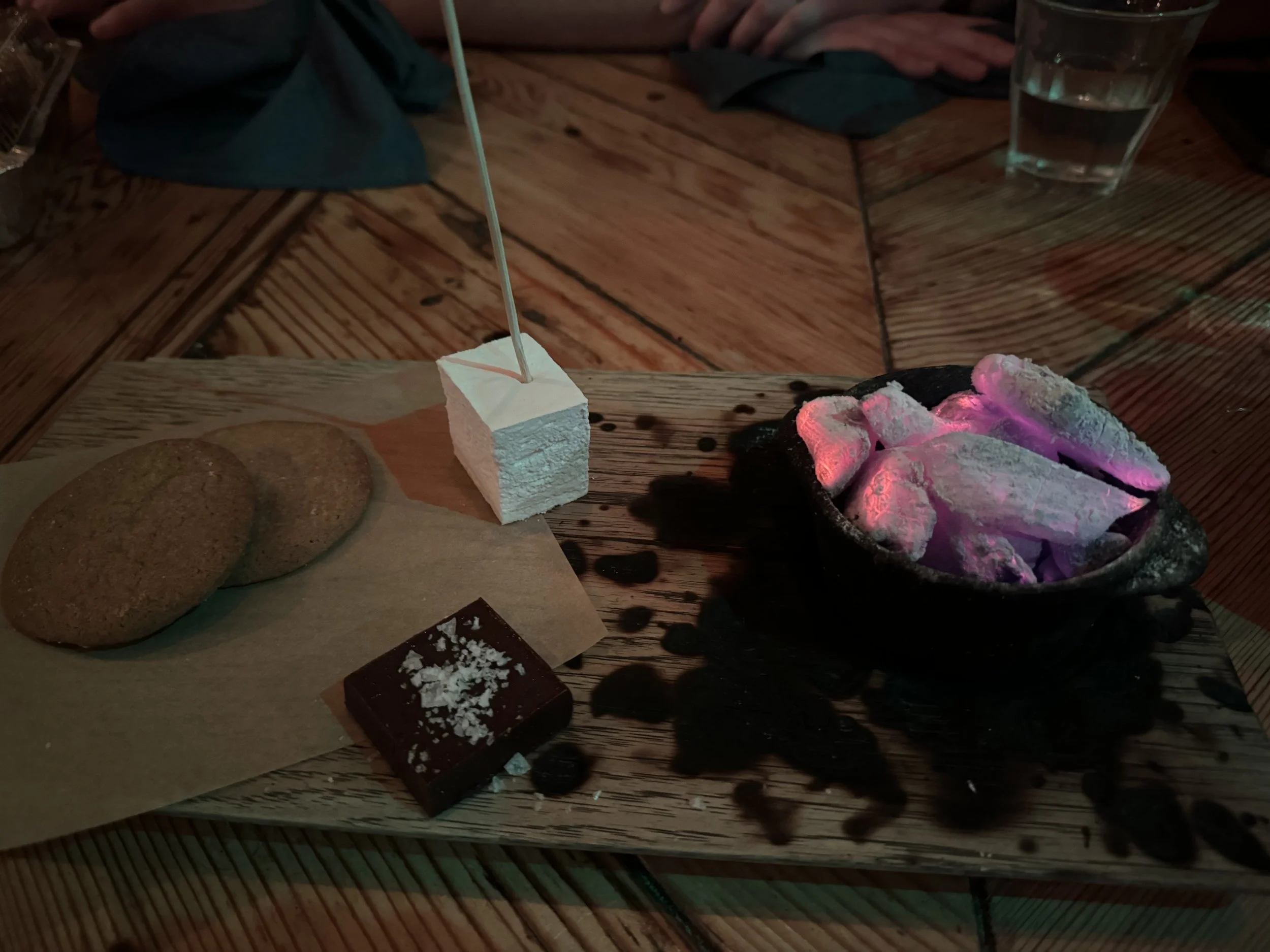 After settling in, we headed out for dinner with our old neighbors and dear friends Jesse and Angela. We stopped by their house first to see their kids and then the adults headed out to dinner at a restaurant in nearby Carlsbad called Campfire. The food and drinks were absolutely delicious, it was sort of a family style dinner for the sides but then you had your own main course dish. The desserts especially were a standout event. I had smoked butterscotch soft serve and Tim had s’mores which came deconstructed with a tiny little campfire for him to cook them on. It was very well done.