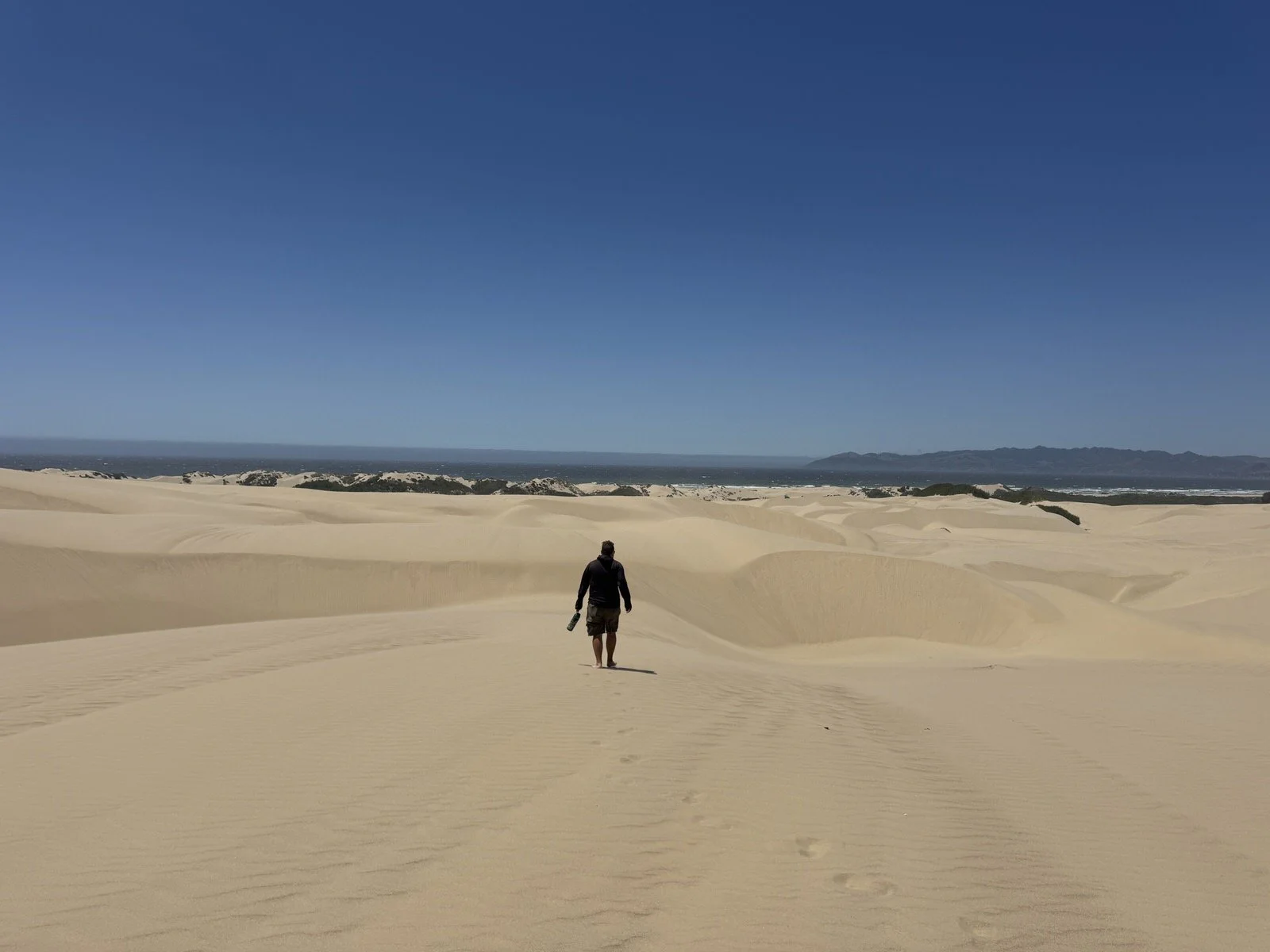 After saying bye to Tim’s cousin we cycled back to the RV and went for a walk out on the dunes. We’d hoped to make it to the ocean but it turned out to be a lot further than it looked so we turned back after half a mile. It was still cool to get far enough out to be completely surrounded by sand. The Dune soundtrack was playing in my head the whole time.