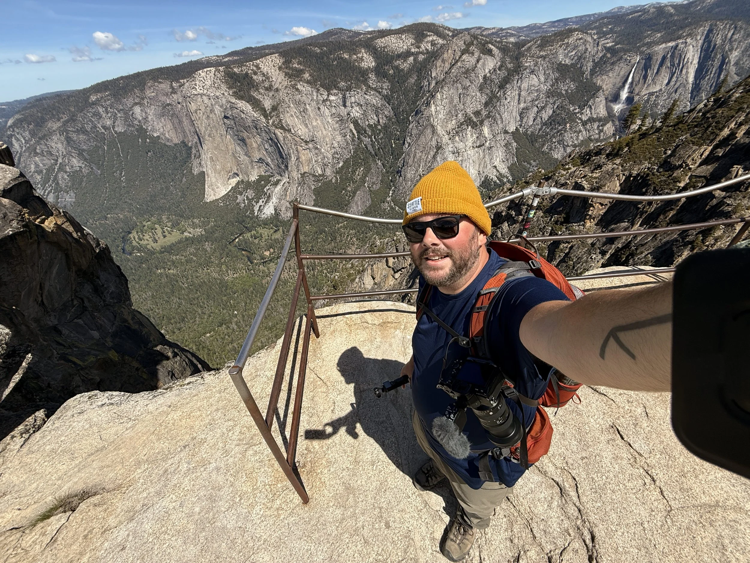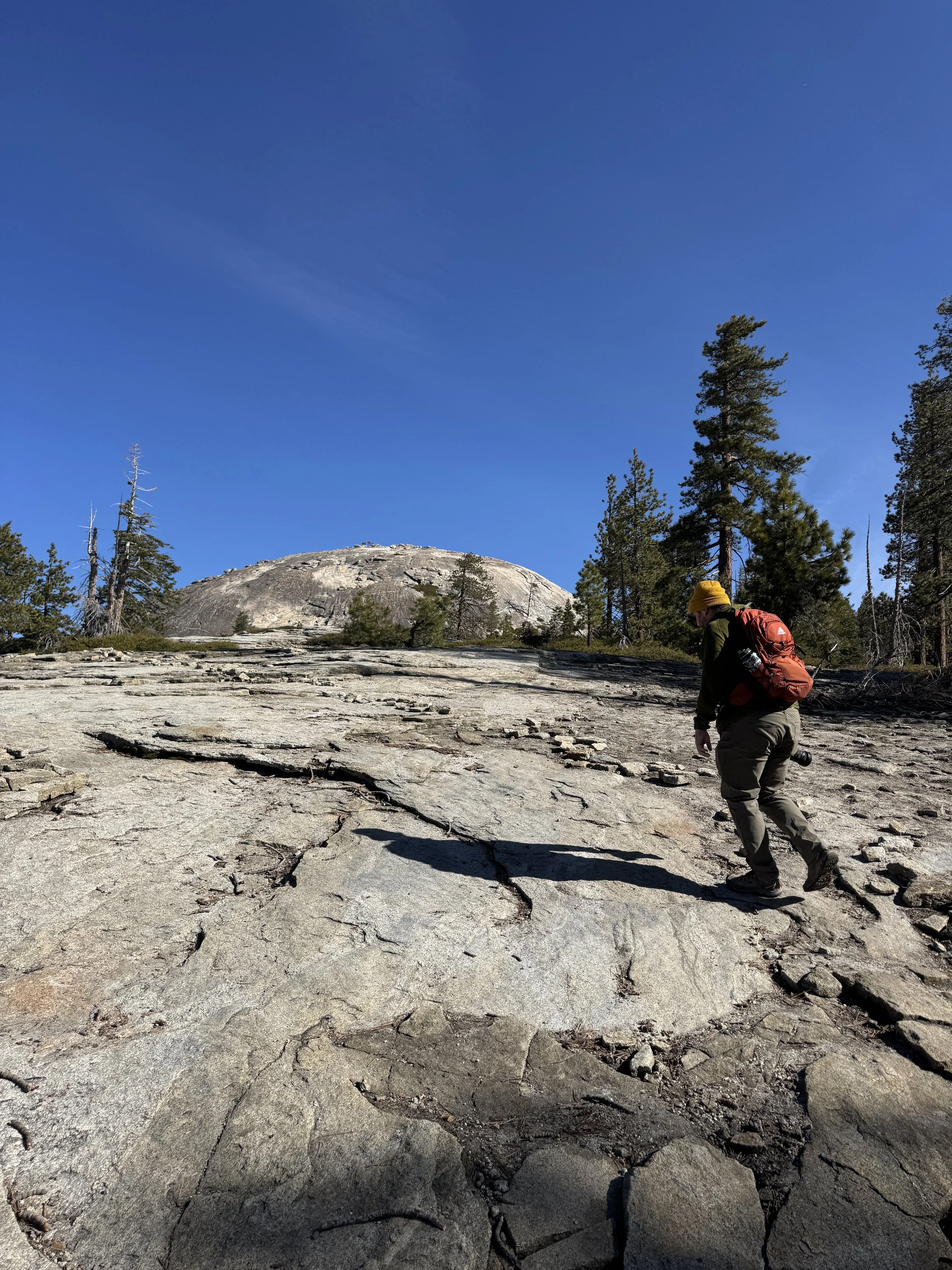 Since we were so early we did manage to snag a parking spot at Glacier Point and we did the short walk to the viewpoints and just wow wow wow. We are so blessed that we can just drive to a spot like this and take in these amazing views. We spent a good 30-45 minutes just walking around looking in every direction and the various waterfalls, valleys and mountains we could see. Once we’d had our fill we drove a couple miles back down the road to the Sentinel Dome/Taft Point trailhead parking. This is another spot that is extremely busy and you need to get there early or use the shuttle. We thankfully managed to get a spot so we threw on our boots, grabbed our bags and headed off to hike Sentinel Dome.